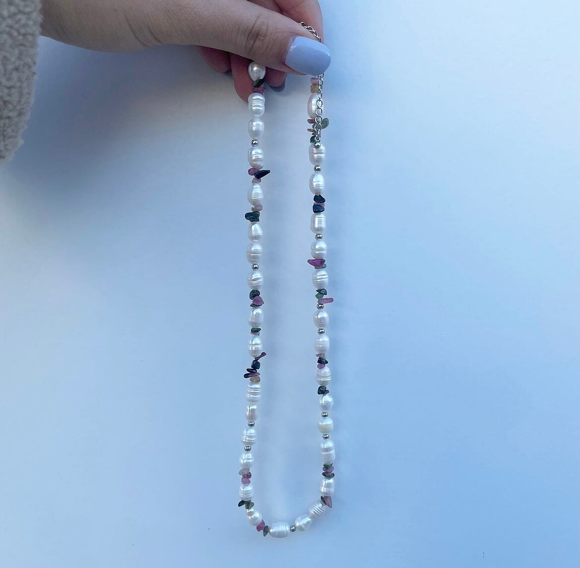 様々な色のトルマリンがかわいらしいユニセックスネックレスです。